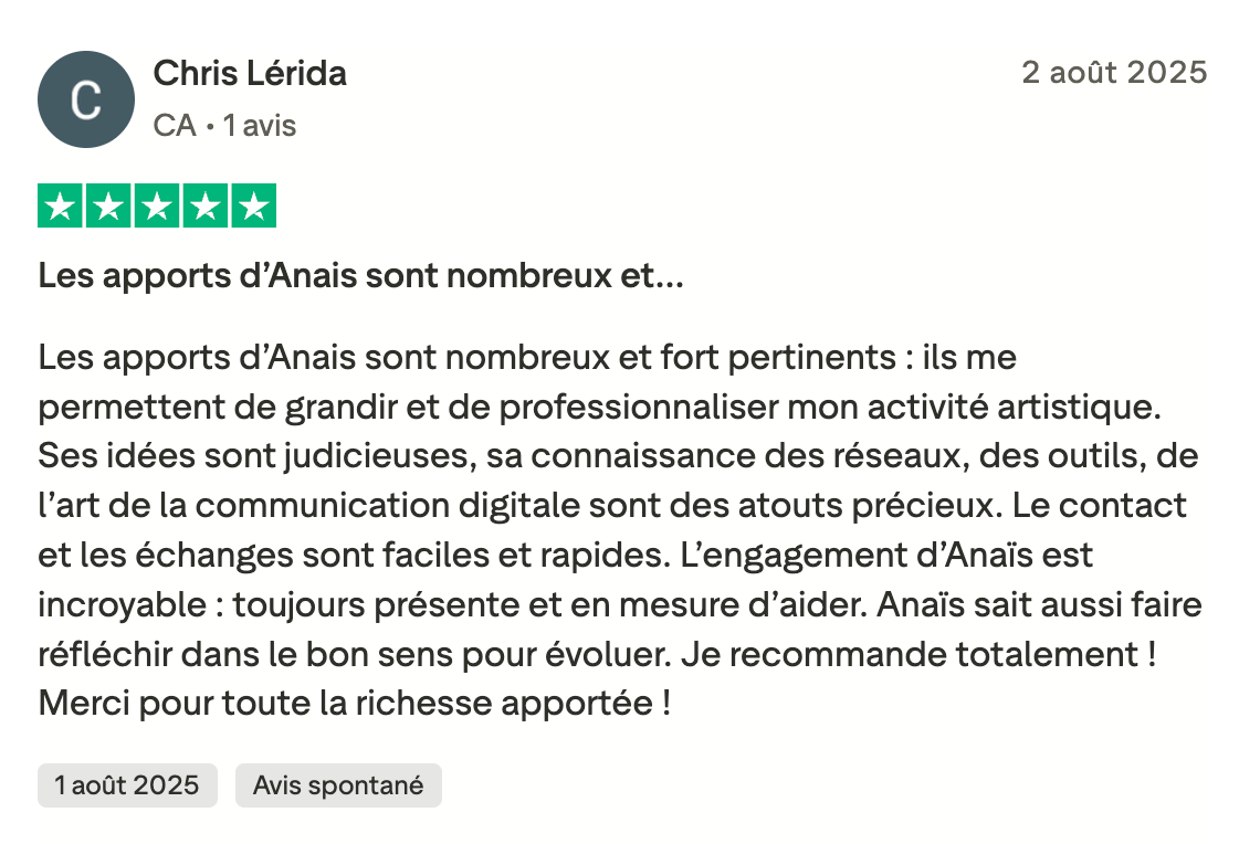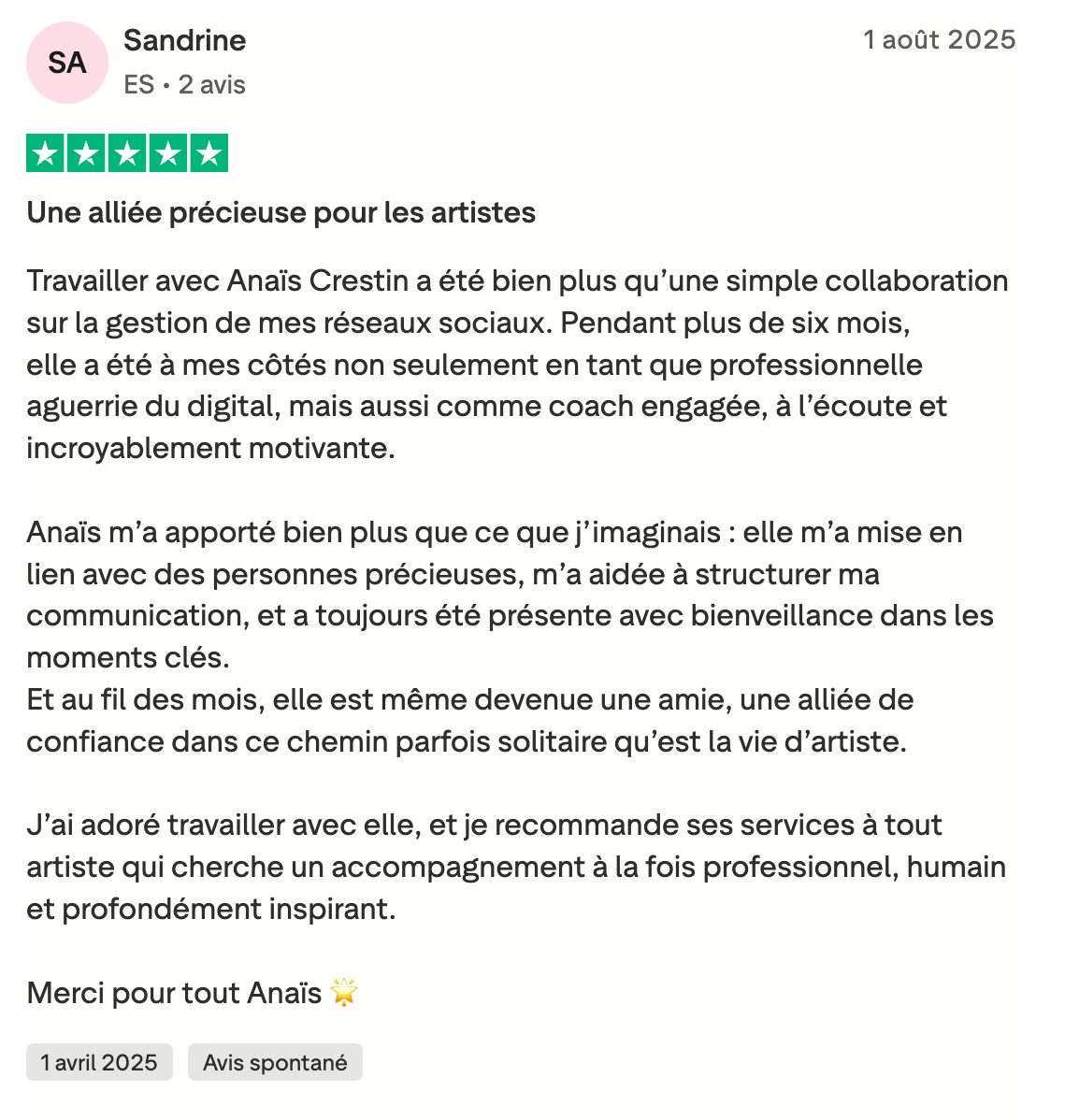 Véritable bras droit artistique, elle accompagne chanteurs et musiciens dans leur stratégie, leur branding et leur confiance en scène, afin de leur permettre de construire un parcours durable et épanouissant.